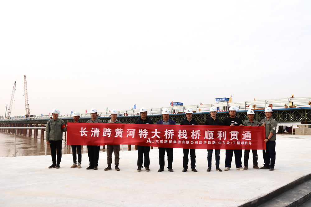 10月20日,由路橋集團(tuán)承建的鄭濟(jì)鐵路(山東段)長清跨黃河特大橋施工棧橋順利貫通!