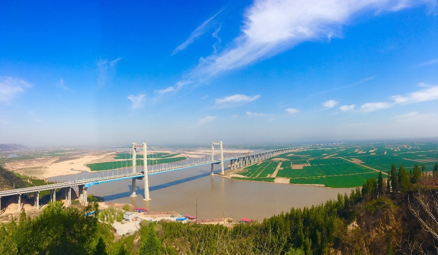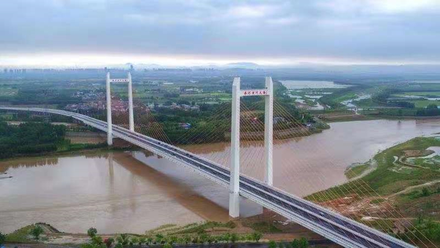 濟齊黃河公路大橋位于濟南市槐蔭區(qū)與德州市齊河縣交界處,是山東省委省政府“一圈一帶”發(fā)展戰(zhàn)略的重要基礎設施工程。大橋全長3767.9米,主橋采用塔墩固結、塔梁分離半漂浮體系,全長840米,主跨為單跨跨徑410米雙塔雙索面鋼-混組合梁斜拉橋,是黃河流域單跨最大的斜拉橋。該橋進一步拉近濟南與齊河之間的距離,大大加快德州融入省會經(jīng)濟圈的腳步。