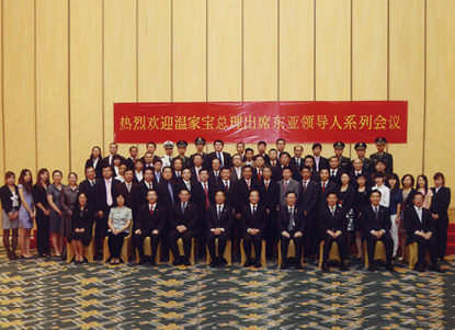 原中共中央政治局常委、國務(wù)院總理溫家寶2010年10月在越南親切接見集團公司河內(nèi)至海防高速公路參建員工代表并合影。